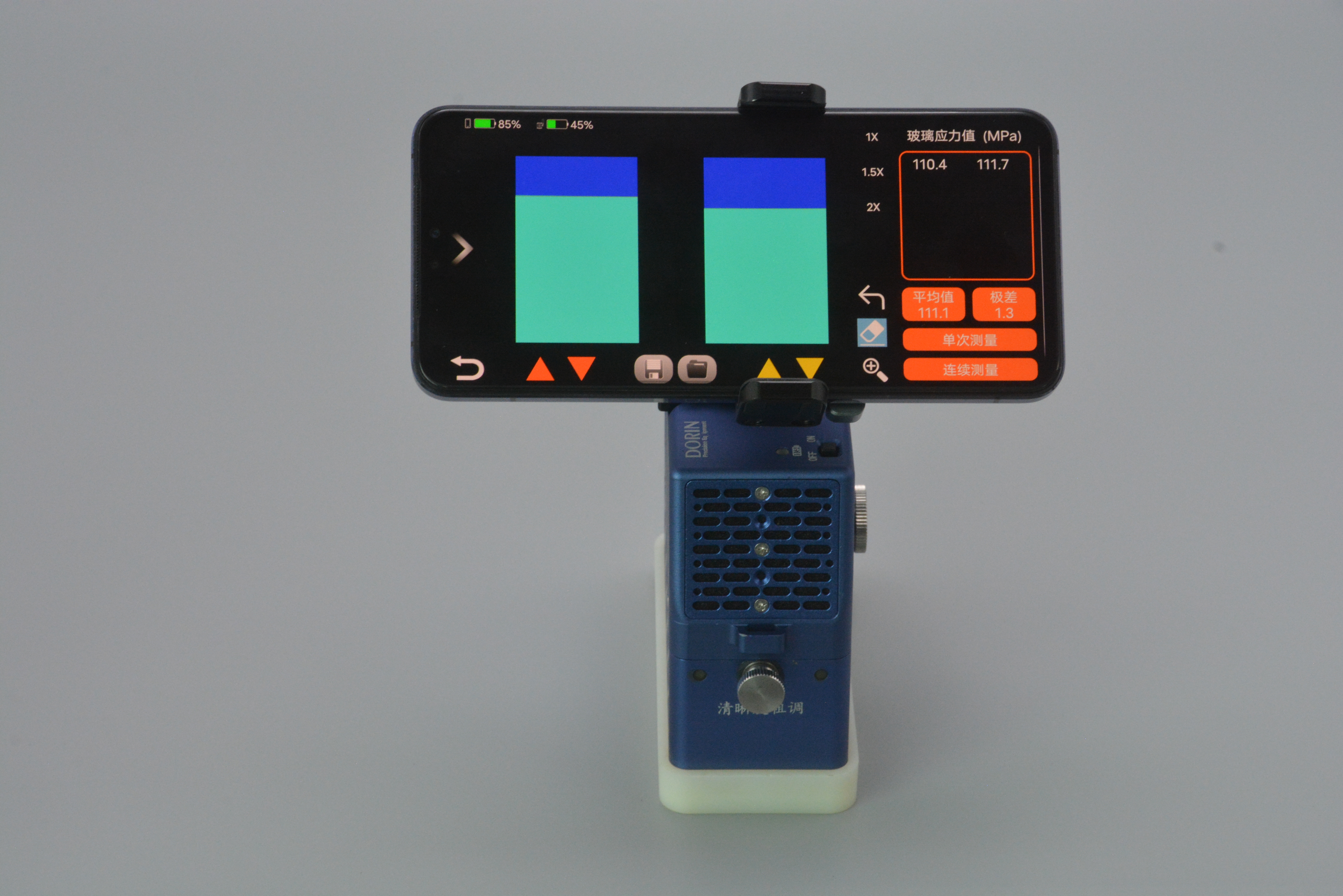 輕巧實(shí)用:儀器僅重 640g,體積小巧,將儀器置于浮法玻璃的浸錫面的表面上,調(diào)節(jié)圖像,即可測(cè)量。